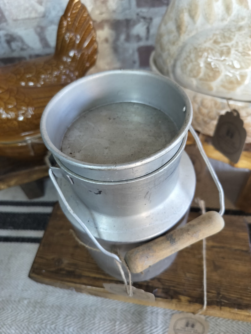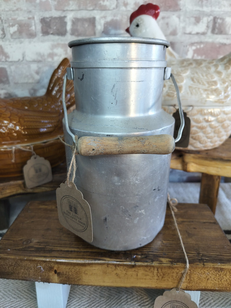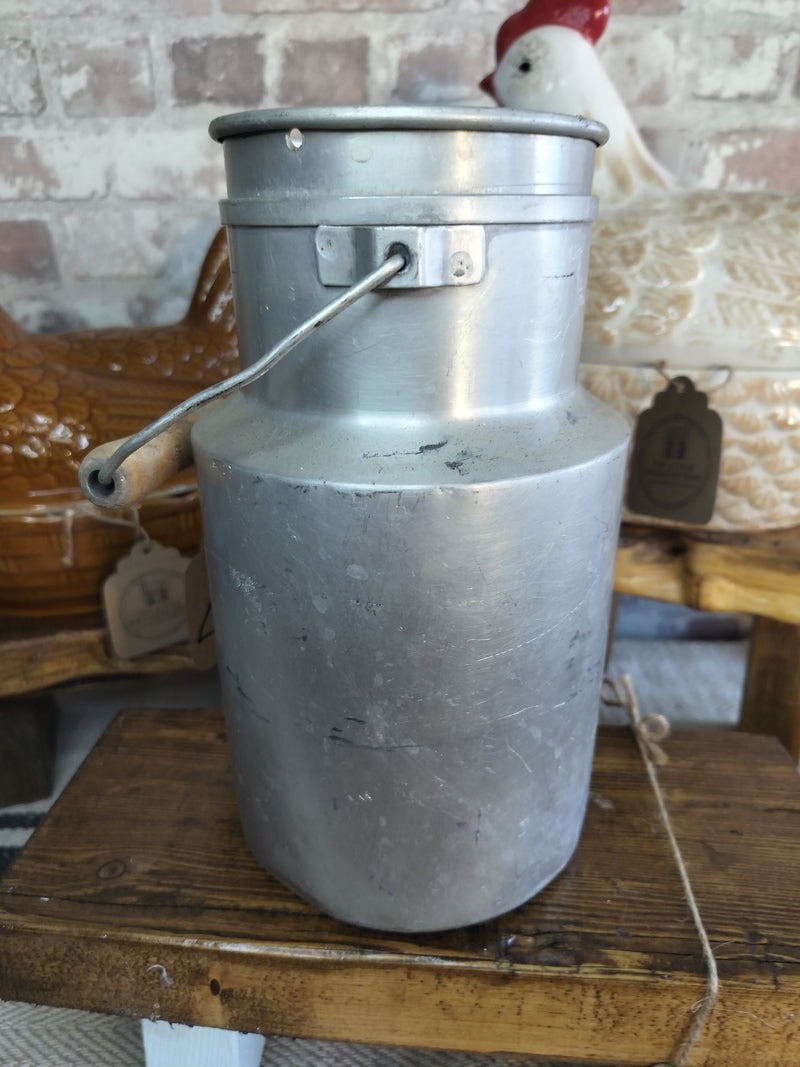 Handcrafted from aluminium and full of authentic age, it once would have been used to transport fresh milk from farm to table. Today, it makes a wonderful decorative accent for any rustic, country, or brocante-inspired home.